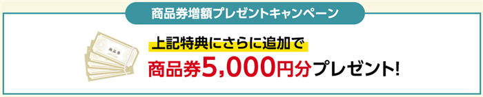 上記の特典に追加で商品券5,000円分プレゼントがされます。