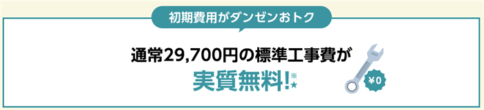 通常29,700円の標準工事費が実質無料となります。