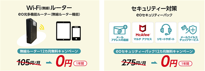 また、オプションサービスでeo光ネットと同時申し込みで1年間無料となり、更に初期設定サポートも無料になります。